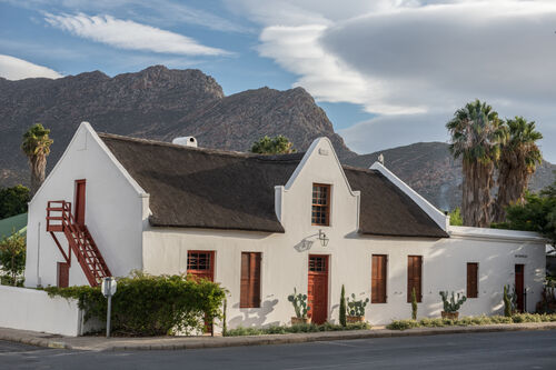 I turned left into Long, one of the most beautiful village streets in South Africa. There are national monuments at every turn, interspersed with fields and orchards, giving it a charming rural feel. Look out for the square, pedimented gable (1859) at number 17, the five-bay Cape Georgian double-storey (1865) at number 26 and the typical thatched, L-shaped cottage with end gables (c. 1860) at number 32.
